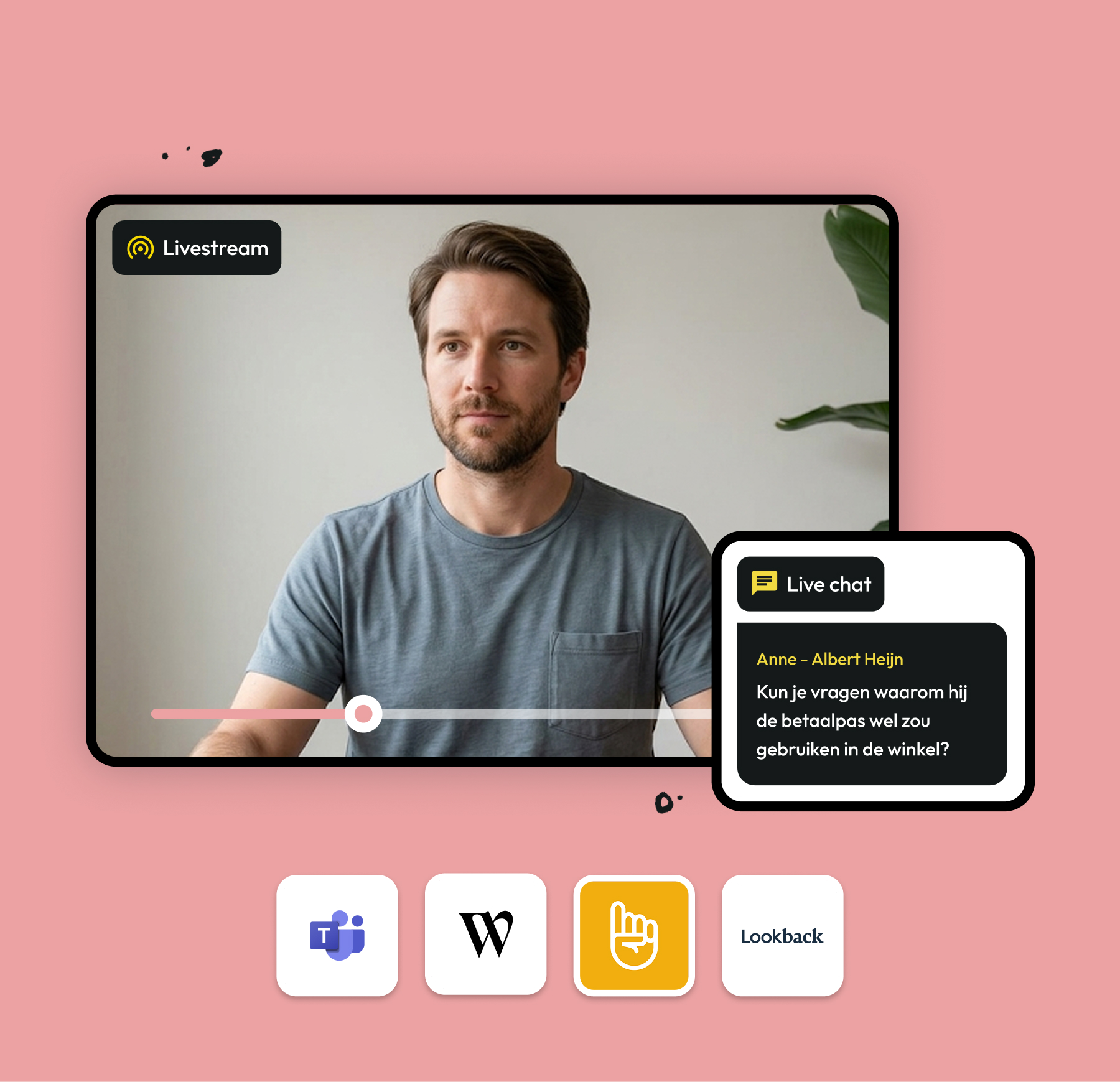 Test met de tools die je gebruikt. Ons platform werkt met Teams, Google Meet, Whereby, Lookback